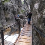 Am Samstag ging es dann in einer kleinen Gruppe los zu einer Wanderung zu und durch die Höllentalklamm. Das war wirklich eine richtig tolle Wanderung durch schönen Wald, durch ein Felsmassiv durch das sich das Wasser seinen Weg gebahnt hatte. Wirklich schön. Wir wanderten bis zu einer Hütte, wo wir uns kurz stärkten und dann den Weg zurück antraten. Wieder wurden wir ordentlich nass und die Wege in der Höllentalklamm, die vorher schon ziemlich feucht waren, wurden zu kleinen Wasserfällen. Glücklicherweise kamen wir gut und relativ zügig wieder unten an, so dass wir uns, zurück auf der Hütte, noch ein wenig ausruhen konnten. Dann ging die sehr tolle, feucht fröhlich Hochzeitsfeier los, die uns sehr viel Spaß gemacht hat.