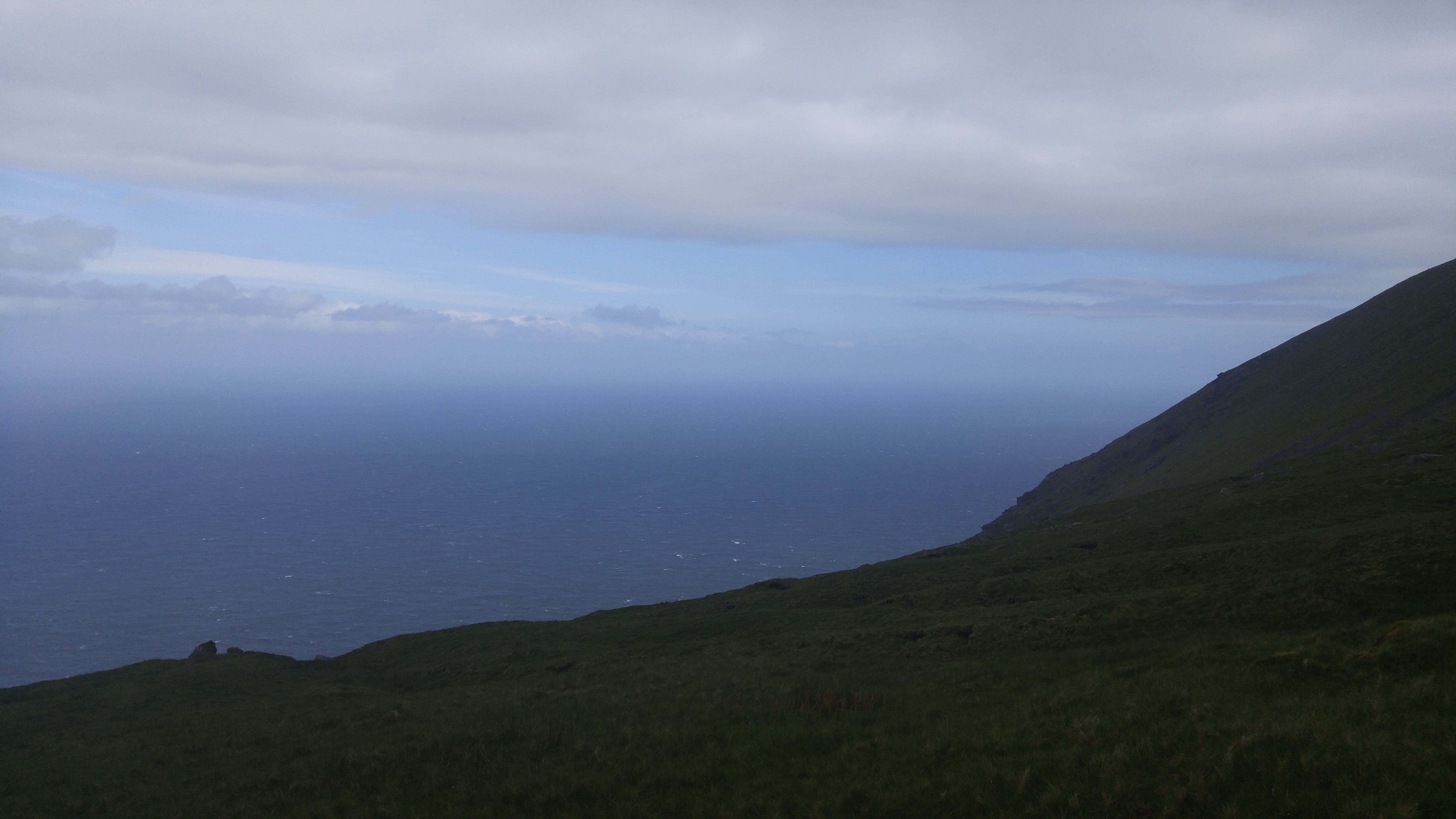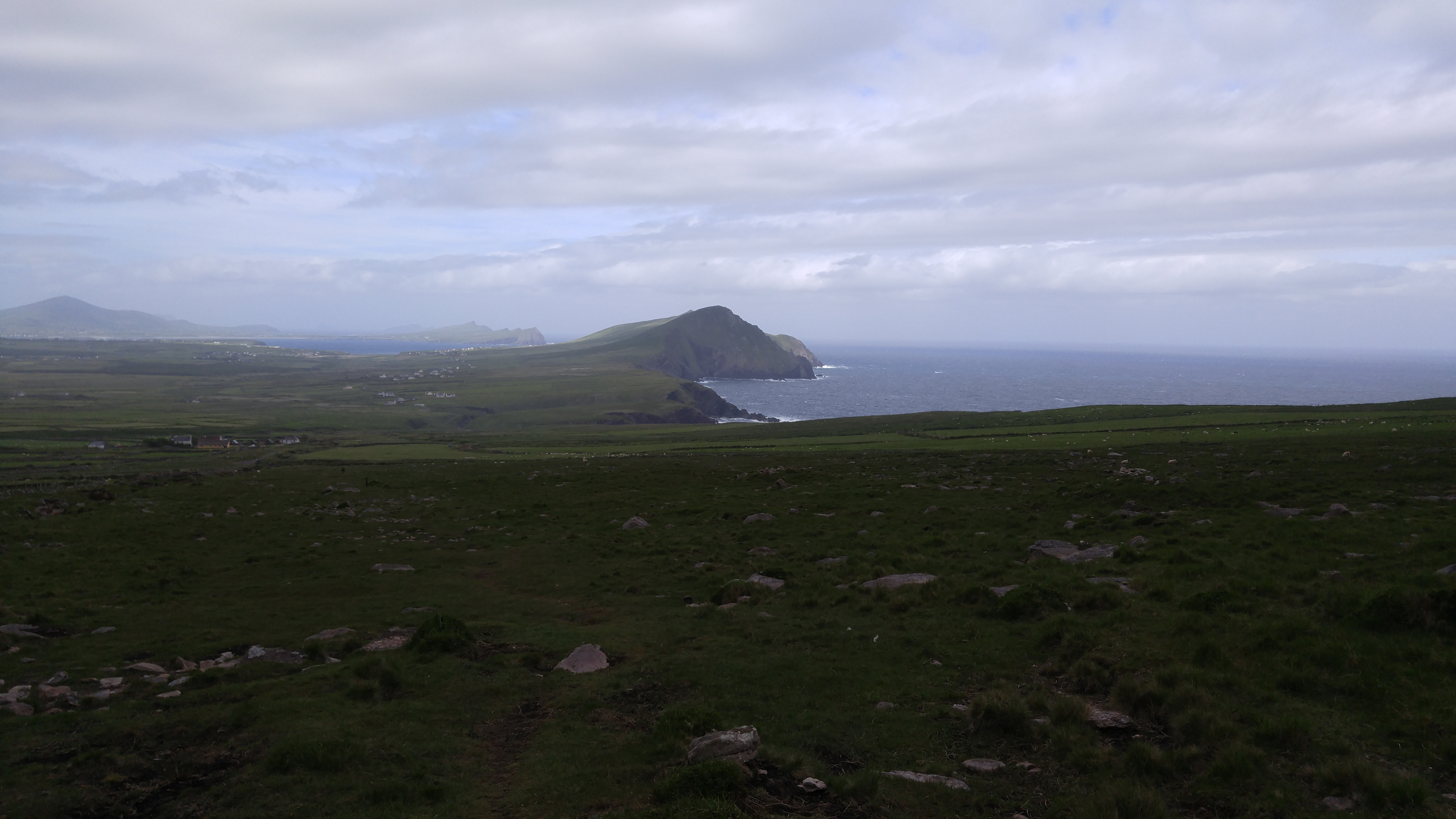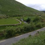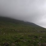 Gestern machten wir uns zu der sechsten und laut Reiseführer schwierigsten Etappe auf den Weg. Wir bemühten uns also frühzeitig aufzubrechen, um genug Zeit zur Verfügung zu haben. Da wir am Fuße des Mount Brandon übernachtet hatten, dessen Sattel wir heute überqueren wollten, ging es auch ziemlich schnell stetig bergauf. Wir kamen wieder auf Schafweiden. Diesmal gab es jedoch gar keinen Weg, sondern wir arbeiteten uns von Holzpfeiler zu Holzpfeiler immer weiter die sehr unebene und teilweise nasse Wiese nach oben. Am Anfang war der Anstieg noch relativ human, bis es dann irgendwann immer steiler wurde. Als wir schon dachten, dass wir oben sind, stieg der Weg nur eine Weile nicht so stark an bis es wieder ordentlich nach oben ging. Auch wenn es ein bisschen diesig war, hatte man wirklich tolle Ausblicke und der Aufstieg lohnte sich. Die Wiesen waren teilweise sehr nass, so dass man sich immer wieder einen einigermaßen trockenen Weg bahnen musste. Aber nach einigen Kilometern hatten wir den Sattel erreicht, wo es unglaublich windig war und wir zusahen wieder nach unten in windstillere Regionen zu kommen. Der Weg nach unten war auch nochmal sehr anspruchsvoll. Da alles matschig war und die Steine über die wir kletterten auch teilweise nass waren, musste man schon sehr vorsichtig sein. Wir bahnten uns wieder unseren Weg und versuchten möglichst trockenen Fußes weiter zu kommen. Nach einiger Zeit kamen wir dann an eine Schotterstraße und damit ging der anstrengendste aber damit auch schönste und abenteuerliche Teil dieser Etappe zu Ende. Diese Schotterstraße führte uns, weiterhin umgeben von Schafweiden, stetig nach unten, bis wir wieder eine kleine Straße erreichten. Dort wanderten wir noch durch ein kleines Örtchen, wo wir erneut einen Pub fanden, bei dem wir am Wasser sitzend ein kühles Getränk zu uns nahmen. Dann ging es weiter die Straße entlang, die dann bald nochmal ein Stückchen bergauf ging, um dann irgendwann abzubiegen und uns über grüne Schafsweiden unserem Ziel näher zu bringen. Nach 24 km haben wir diese Etappe gut hinter uns gebracht und den Abend im Pub ausklingen lassen, wo wir auch die Österreicher wieder trafen, denen wir auch schon auf dem Weg immer mal wieder begegneten.