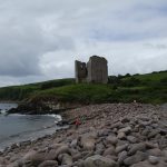 Gestern ging es wieder früh los. Nachdem wir während des Frühstücks auf den nicht enden wollenden Regen blickten, hatte das Wetter als wir los liefen doch erbarmen und es war trocken. Am Anfang liefen wir an einer ziemlich stark befahrenen Straße entlang, was leider nicht so schön war. Glücklicherweise konnten wir bald auf eine kleinere Straße abbiegen und wurden wieder von vielen neugierigen Tieren am Straßenrand begleitet. Leider liefen wir auf dieser Etappe sehr viel über Straßen. Meistens kleine, so dass dort fast keine Autos fuhren aber das hat uns nicht ganz so gut gefallen. Zwischenzeitlich kamen wir an eine Bucht mit einer Schlossruine. Da gerade Flut war, war kein Strand zu sehen aber einen schönen Ausblick auf das Meer hatte man auf jeden Fall. So nah kamen wir diesem auf dieser Etappe auch nicht mehr. Es gab glücklicherweise im hinteren Teil auch wieder einen Teil der über kleine Wege und direkt über die Schafs- und Kuhweiden verlief. In diesem Teil hatte man auch wieder einen tollen Blick auf die Berge und das weiter entfernte Meer. Dieser Teil ging jedoch bald zu Ende und wir näherten uns auf einer Schotterstraße langsam unserem Ziel, das wir dann auch erreichten. Nachdem es wirklich den ganzen Tag schön und sonnig war, traf uns leider auf den letzten Metern noch mal ein ordentlicher Regenschauer. Aber wenn man weiß, dass man bald aus den nassen Klamotten raus kommt, ist das auch nur halb so schlimm.