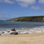 Bald kamen wir an einen tollen Sandstrand, an dem wir auch eine ganze Weile entlang liefen. Ich hätte nicht gedacht, dass es hier so tolle, lange Sandstrände gibt – wirklich schön. Da konnte man sich gar nicht satt sehen. Nach einer Weile verließen wir diesen und nach einiger Zeit ging der Weg immer weiter nach oben bis wir wieder auf Schafweiden landeten und einen fantastischen Blick auf die Küste hatten. Hier liefen wir eine ganze Zeit lang und genossen den tollen Ausblick. Der Weg machte es uns nicht allzu einfach, sondern ging immer wieder rauf und runter aber es sollte ja auch nicht zu langweilig werden :-).