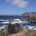 Los ging es bei gutem Wetter zur nächsten Etappe. Erstmal wieder ein bisschen an der Straße entlang, doch schon bald überquerten wir über Feldwege einen kleinen Berg , wo wir dann wieder den ersten tollen Blick auf die Küste werfen konnten. Wieder unten angekommen, ging es erstmal wieder zu einer kleinen Bucht. Wieder mit einem kleinen tollen Sandstrand – traumhaft schön. Danach entschieden wir uns, nicht unserem eigentlichen Weg zu folgen, sondern einen kleinen Umweg zu machen, damit wir noch länger an der Küste bleiben können. Wir wanderten also noch eine zeitlang oberhalb der Steilküste entlang und hatten erneut wunderschöne Ausblicke. Wenn man so dieses türkisfarbene Meer sieht kann man sich gar nicht vorstellen, dass es so kalt ist. Es sieht auf jeden Fall immer sehr einladend aus.