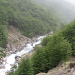 Am nächsten Tag hatten wir eine Wanderung zu dem Wahrzeichen des Parks geplant, zu den Torres del Paine. Das sind drei turmartige Grantifelsen, die an einem kleinen See liegen. Morgens begrüßte uns der Tag mit Dauerregen und sehr starkem Wind aber diese Wanderung wollten wir uns natürlich nicht nehmen lassen. Los ging es dann auch regenfrei und mit ein paar Sonnenstrahlen. Das erste Stück ging sehr steil nach oben und wir ahnten, dass diese Wanderung kein Sonntagsspaziergang wird… Als wir auf einer gewissen Höhe angekommen waren, fing es dann auch an zu schneien. Wir gingen auf einem sehr schmalen Weg oberhalb einer Schlucht entlang, in der sich unten ein Fluß entlang schlängelte. Dort kamen uns dann auch noch Pferde entgegen… Nach dem wir den Kamm erreicht hatten, ging es auch langsam wieder nach unten bis zu dem Fluß hinunter und dann auch eine Stückchen dran entlang. Dann wanderten wir eine zeitlang in einem schönem Wald entlang, wo es immer mal wieder hinauf und hinab ging und wir auch sehr abenteuerliche Holzbrücken überquerten. Dieses Stück war wirklich sehr schön zu laufen. Doch als wir uns dann dem Ziel sehr nah wähnten, kam der anstrengendste Teil! Wir mussten uns eine Stunde lang einen sehr steilen Berg hinauf kämpfen bzw. hinaufkraxeln. (Wer den einen steilen Teil von Schierke zum Brocken kennt mit den vielen großen Steinen auf den Weg, kann es sich vielleicht ein bisschen vorstellen. Diese Strecke war nur viel länger und steiler.) Das war wirklich sehr, sehr anstrengend und eigentlich dachte ich, dass ich einigermaßen fit bin… Auf jeden Fall sind wir dann doch irgendwann oben angekommen und waren glücklich, dass wir es geschafft hatten. Von den drei Türmen war leider nichts zu sehen, da sie vollkommen in den Wolken verschwanden. Wir machten ein kurzes Picknick und konnten zwischenzeitlich, als die Sonne ein wenig raus kam sogar die Türme in den Wolken erahnen. Da es dort oben aber ziemlich windig war, machten wir uns auch bald an den Abstieg. Auf dem Rückweg sahen wir noch einen tollen zum Teil roten Vogel, der wohl seinem Verhalten nach eine Art Sprecht sein muss. (Hier sieht man eh sehr viele bunte Vögel. Sehr hübsch, auch wenn es Vögel sind.) Danach machten wir noch eine kurze Rast in einer Hütte und dann kamen wir nach ca. 20 km mit vielem Auf und Ab und einer 7stündigen Wanderung wieder an unserem Auto an. Wir waren ziemlich kaputt, hatten aber eine wirklich schöne Wanderung hinter uns gebracht.