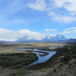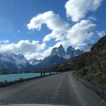 Von Puerto Natales machten wir uns also am Freitag auf den Weg in den Nationalpark Torres del Paine. Schon der Weg dorthin war sehr schön. Es ist unglaublich wie eine Landschaft gleichzeitig so weit aber auch bergig sein kann. Der Weg wurde für uns zu einem kleinen Erlebnis als dann plötzlich die geteerte Straße endete und wir nur noch auf Schotterpisten fuhren für die nächsten Tage. Zum Glück gewöhnten wir uns schnell daran und machten uns nicht mehr all zu große Sorgen um das Auto.